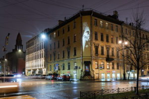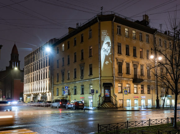 Ко дню рождения Даниила Хармса обновили световую проекцию на фасаде его дома
