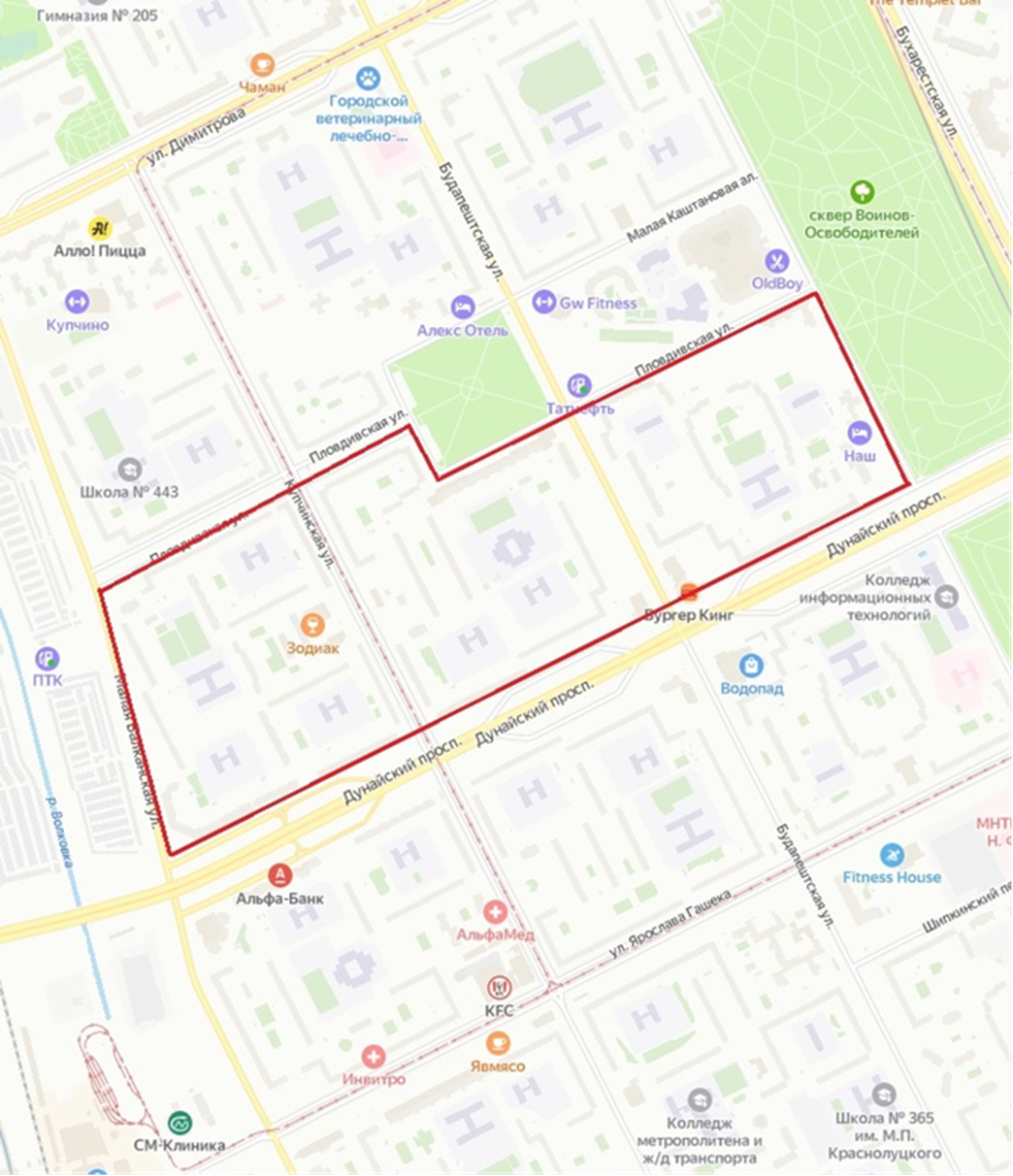 Микрорайон (М.Балканская ул. — Пловдивская ул. — Загребский бульв. — Дунайский пр.)
