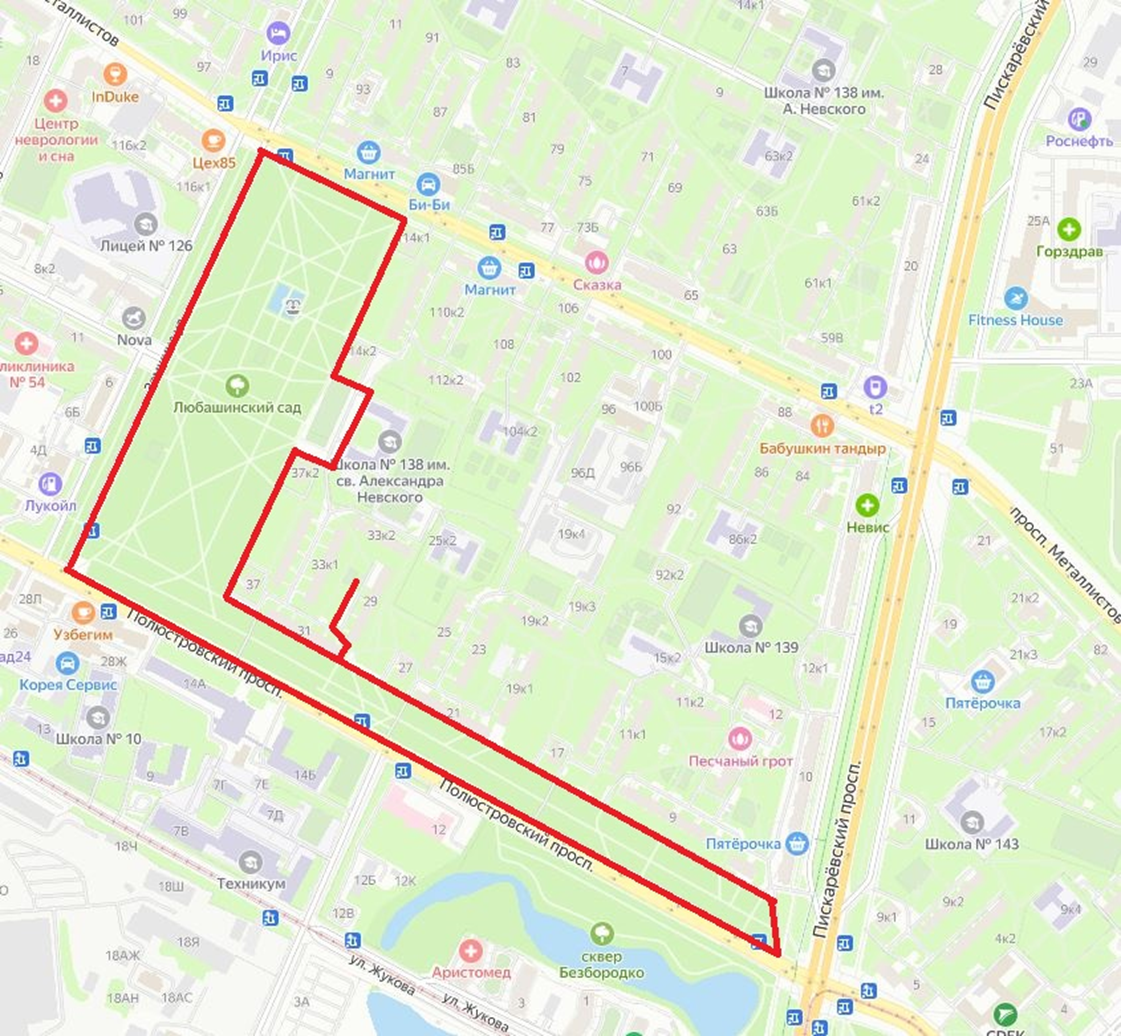 Любашинский сад между Полюстровским пр., Замшиной ул. и пр. Металлистов