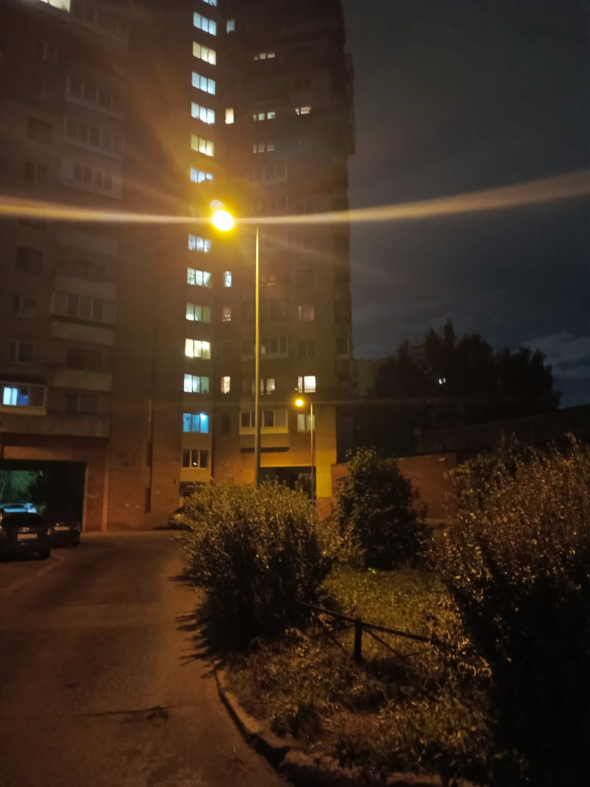Между 1 и 2 подъездом на опоре освещения очень сильно трещит светильник. Спать невозможно.