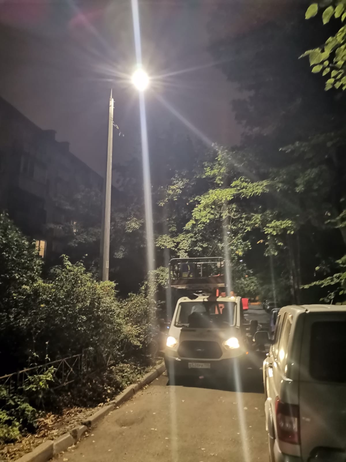 Здравствуйте. Не работает освещение Московского шоссе от пересечения с 3-м Бадаевским проспектом и до въезда в Московскую Славянку. В посёлке Ленсоветовский работают фонари только в направлении движения в сторону Москвы. На всём протяжении установлены фонари, местами двух видов: высокие (7-10 метров) с галогеновыми лампами и низкие (3-4 метра) светодиодные. Почему они не работают - загадка. Неисправны минимум с января 2025-го года. Просьба провести проверку. Все фото делал из автомобиля, так как обочина не освещена и опасна для остановки.