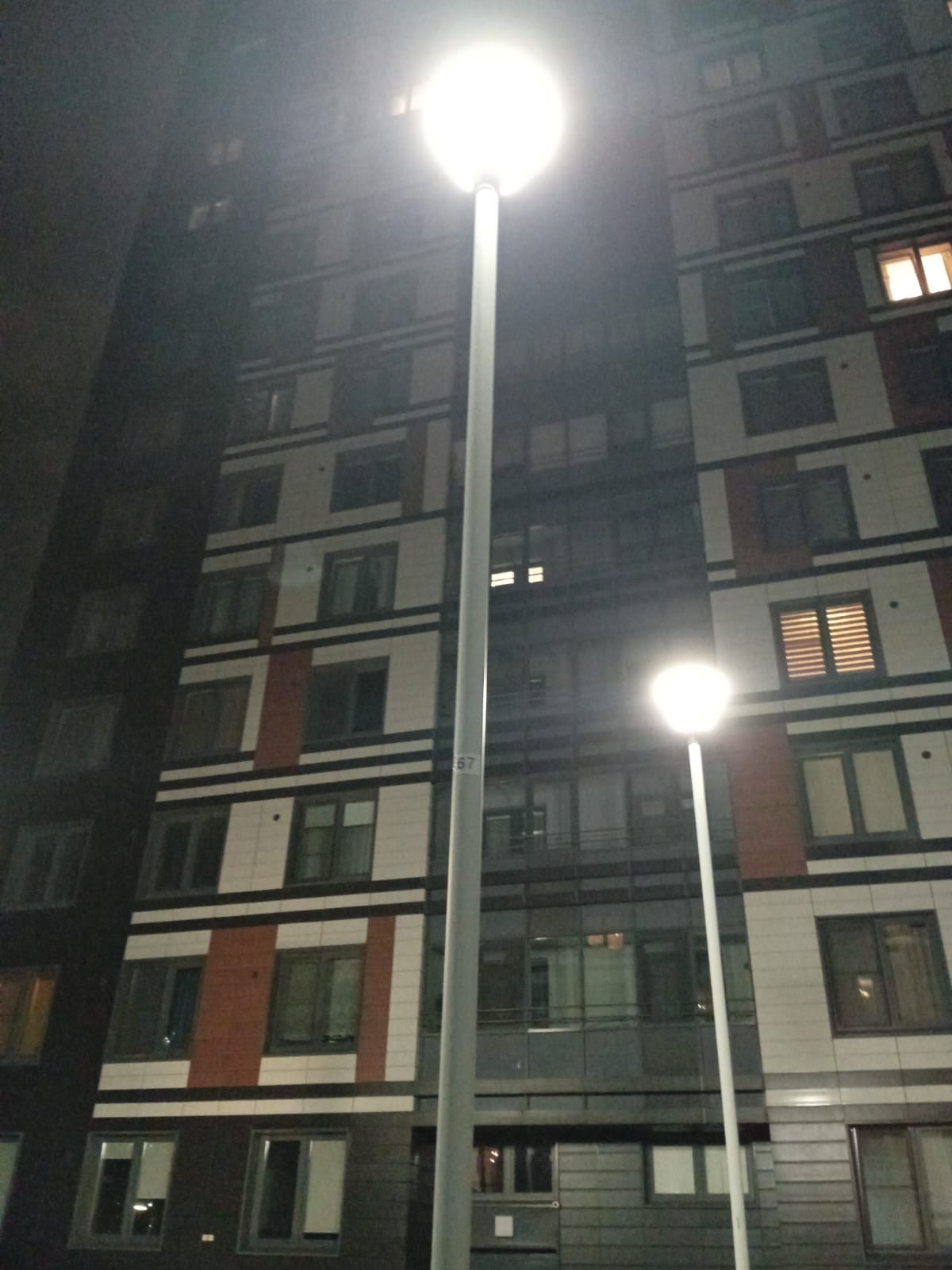 Не все фонари работают около домов 23к5., 23к2,23к4 по Туристской улице, около школы 655 и детского сада 64