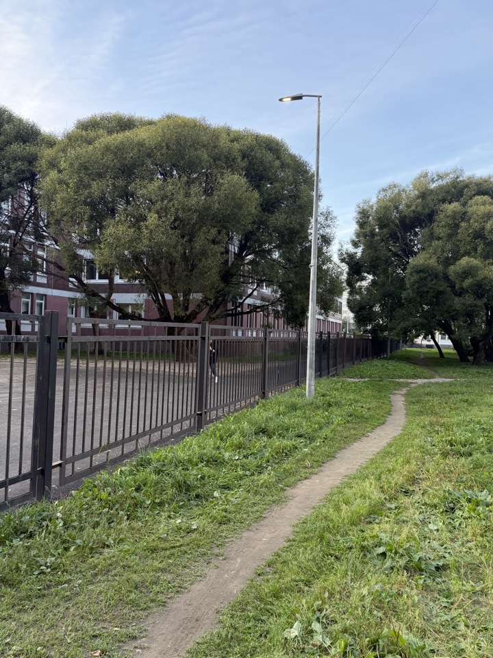 Здравствуйте Не горит светильник около школы 264 по адресу Маршала Казакова дом 3 корпус 2.И на углу школы.