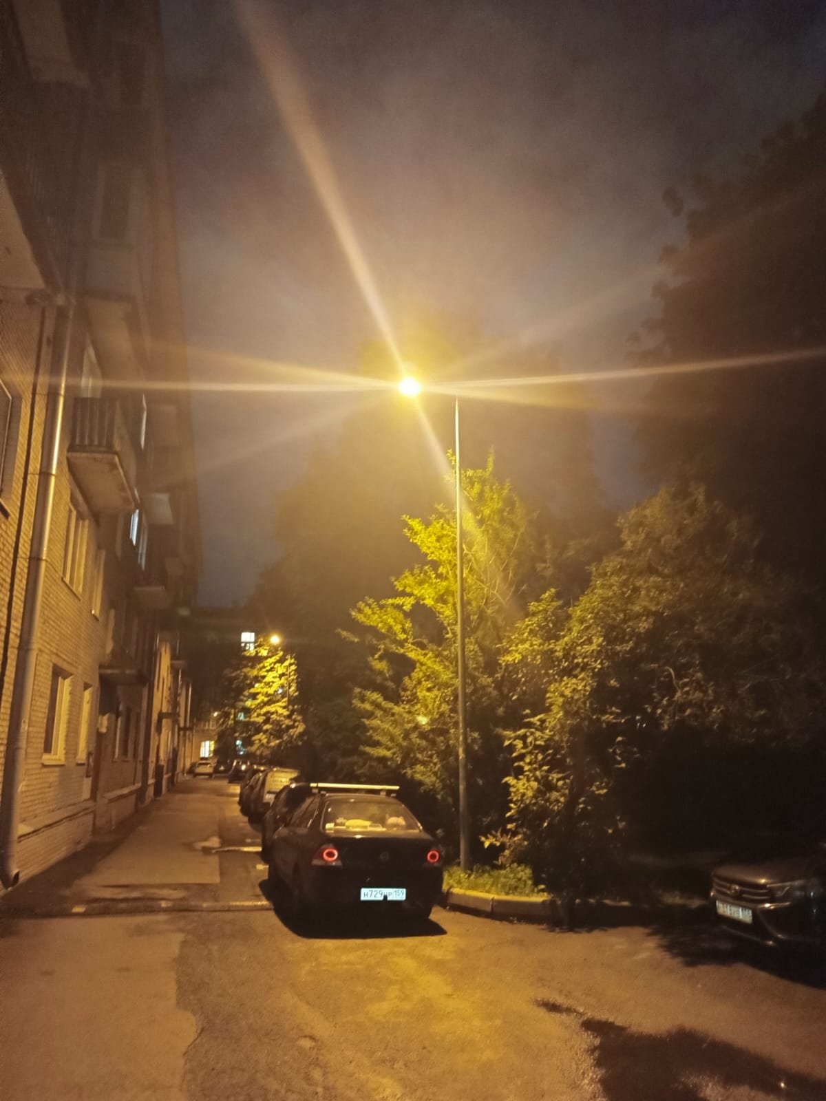 Не работают по паре фонарных столбов у проезжей/пешеходной части и с тыльной стороны дома.