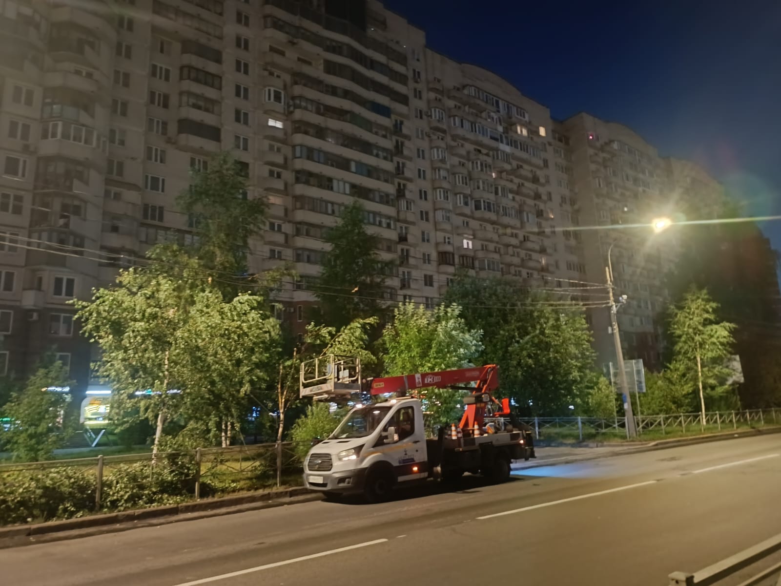 Сотрудниками Приморского Эксплуатационного района выполнена опиловка веток деревьев в пределах минимально допустимых расстояний до их крон, в пределах охранной зоны электрических сетей наружного освещения СПб ГБУ «Ленсвет» (согласно ПП РФ от 24 февраля 2009г. № 160 п.3).