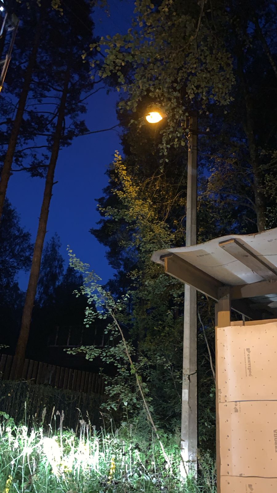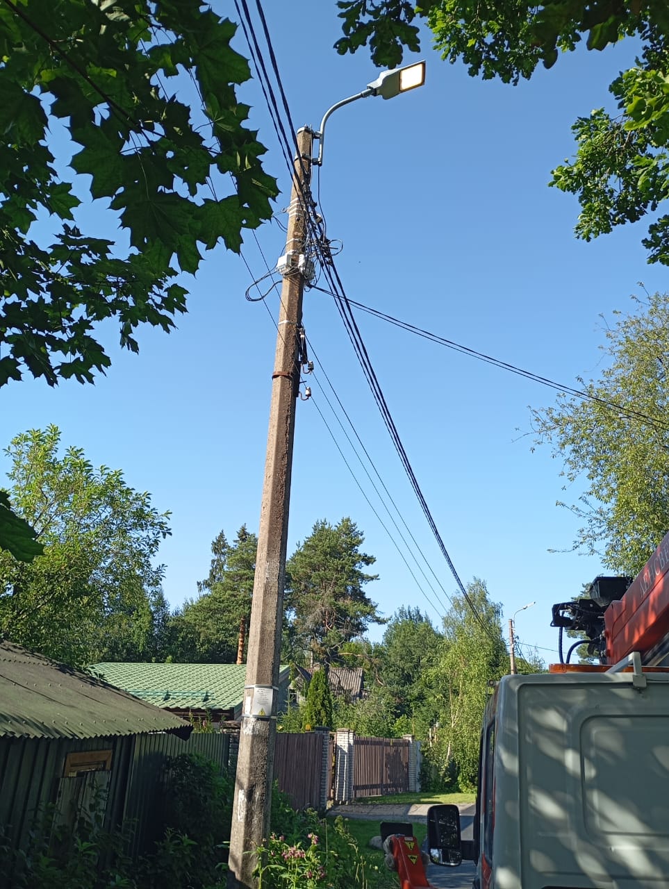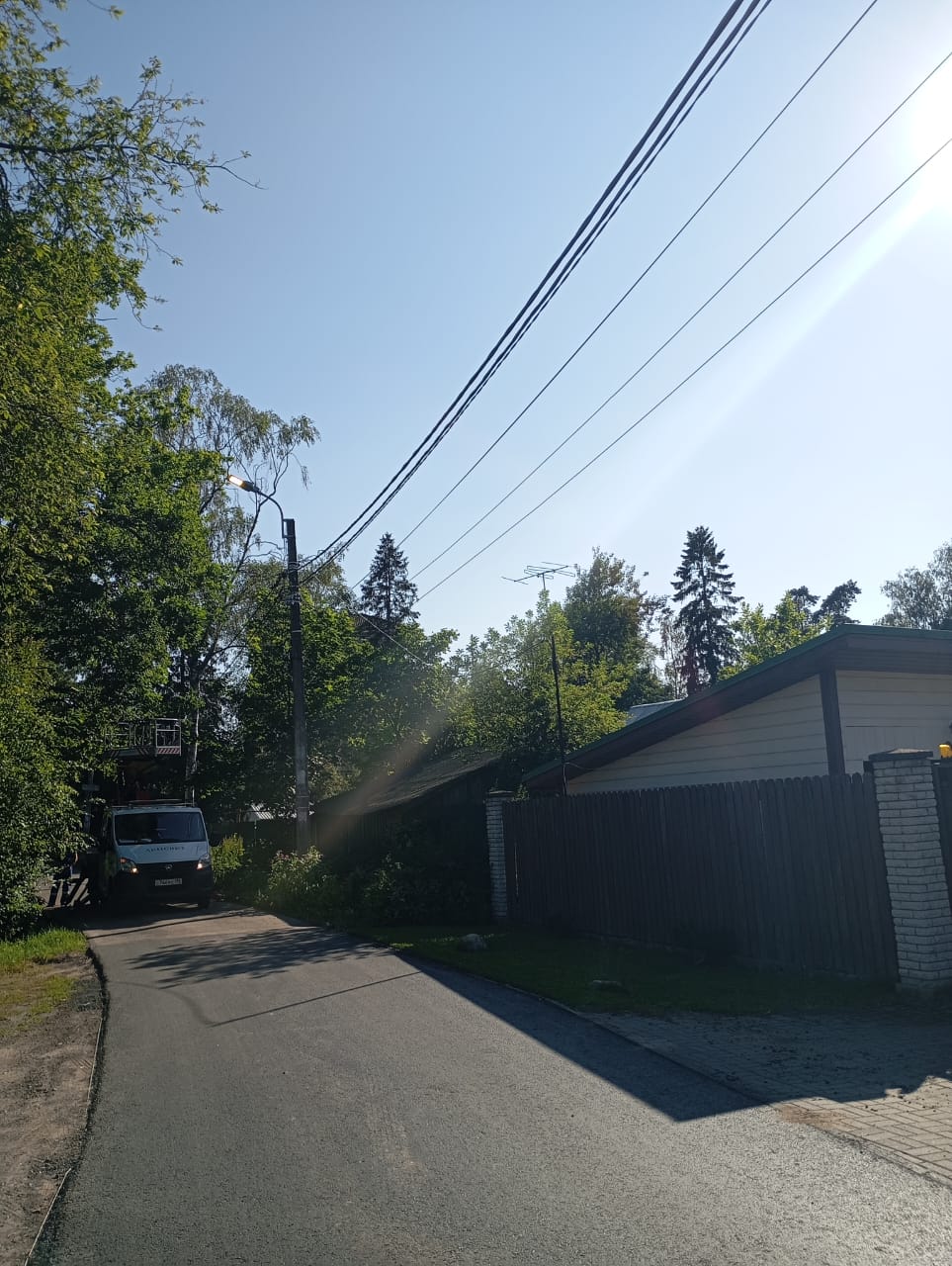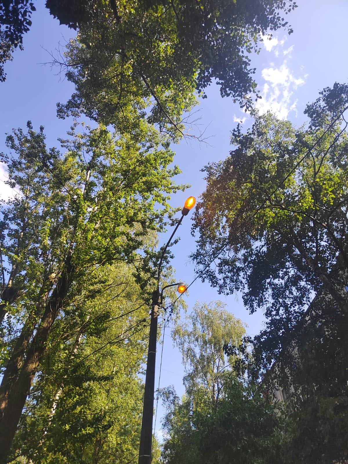 Не работают два уличных светильника на углу дома, которые смотрят в разные стороны. Один на дорожку в детский сад, другой на дорогу к дому