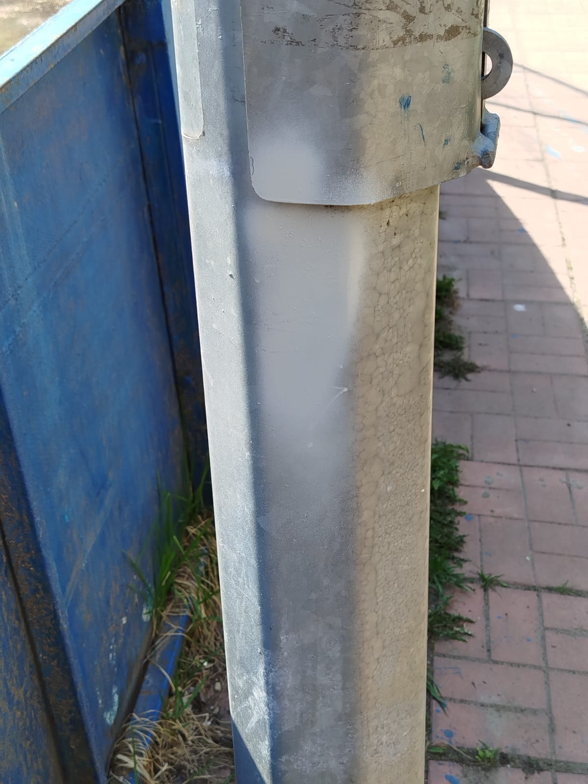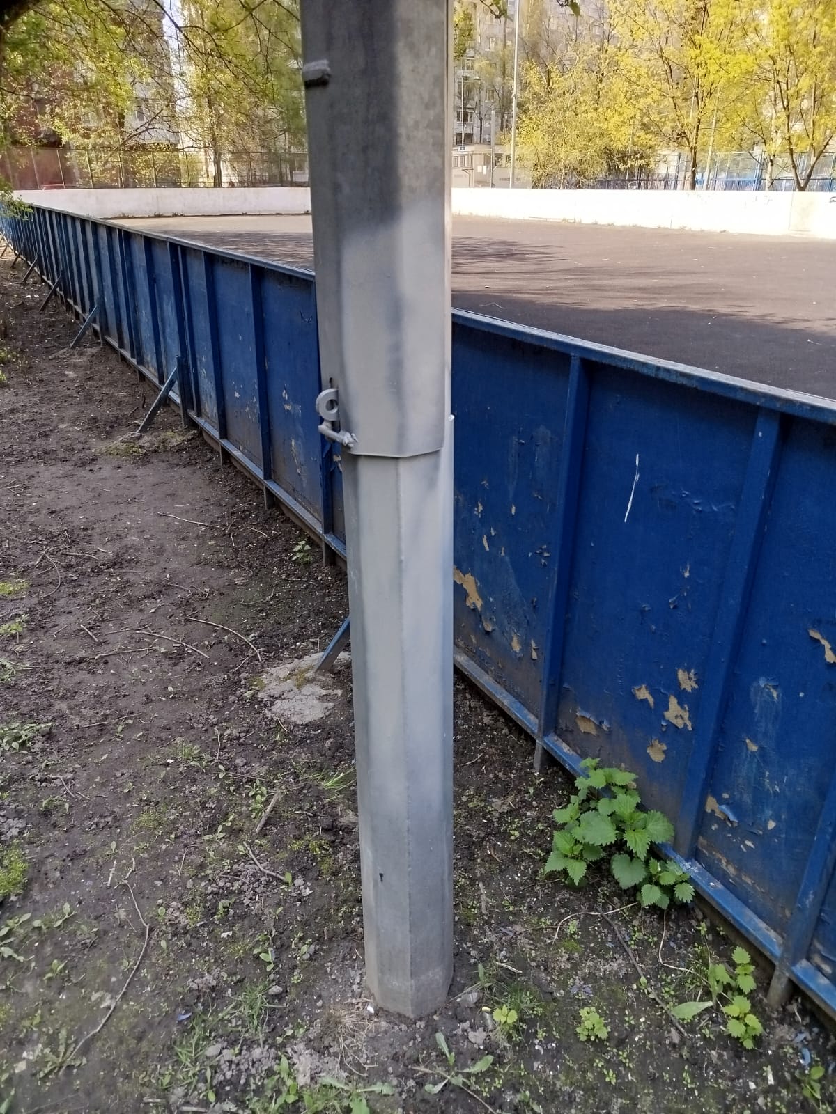 На опоре имеются граффити где хоккейная коробка