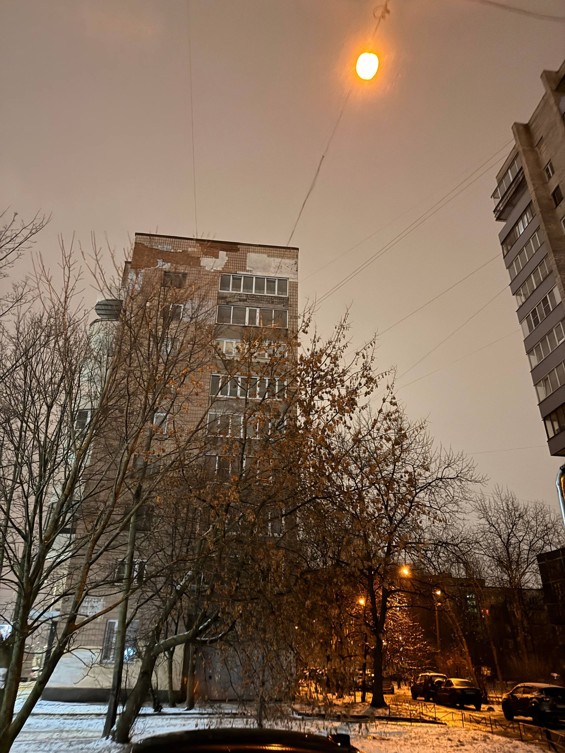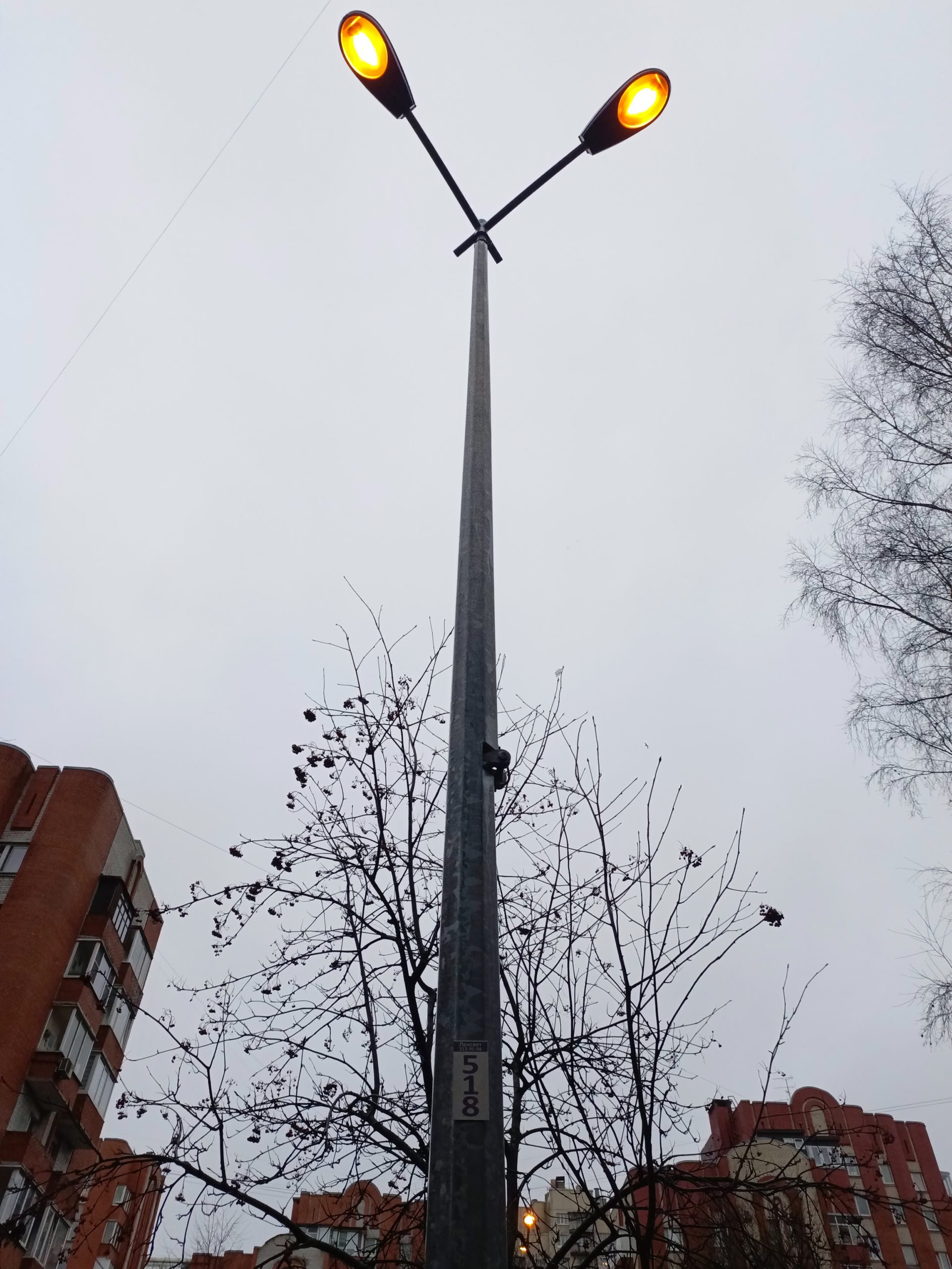 Не горит светильник в проезде дома, он не на мачте а на растяжках/проводах.