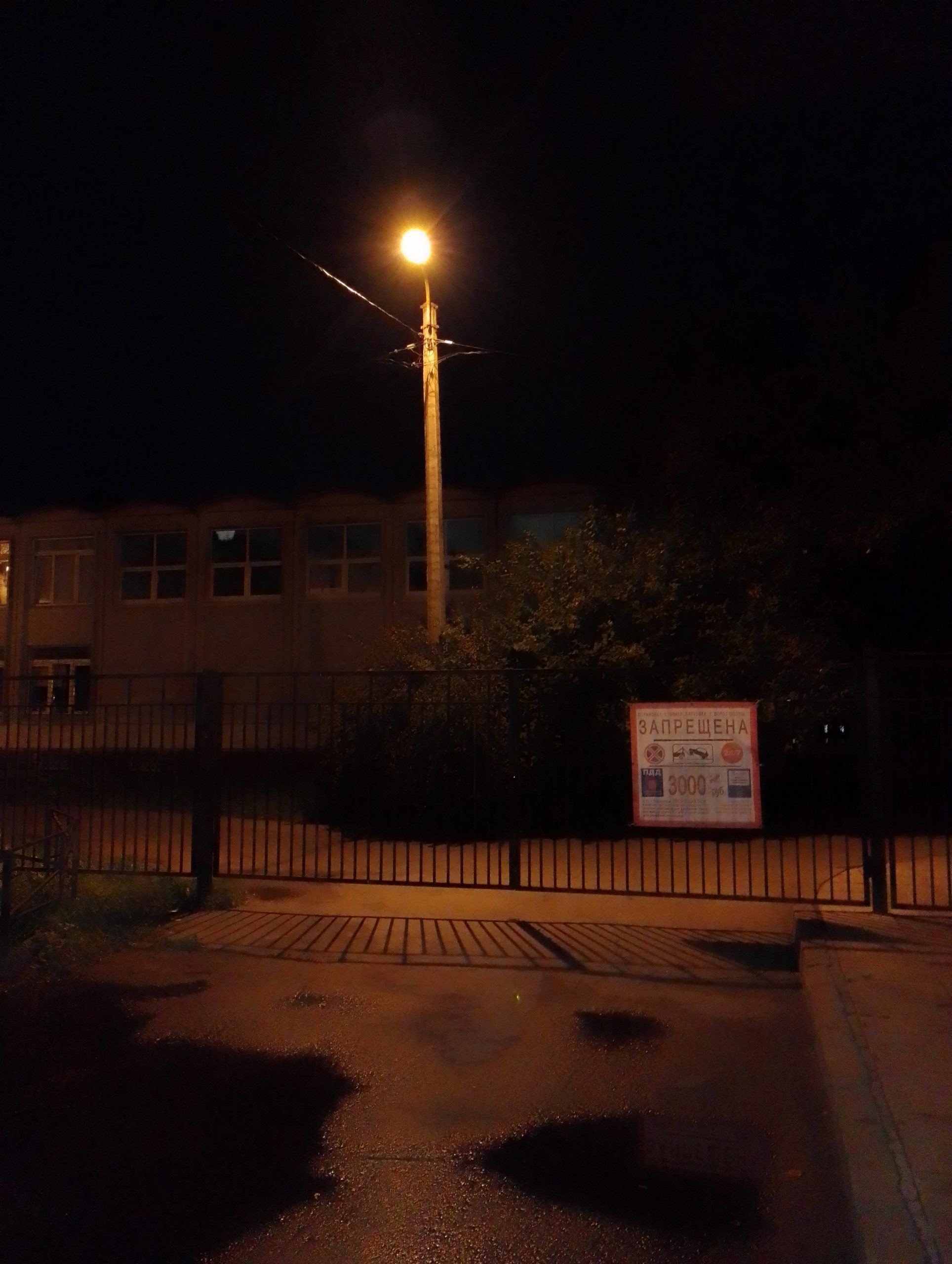 На территории детского сада не горят два уличных фонаря, справа на входе на территорию