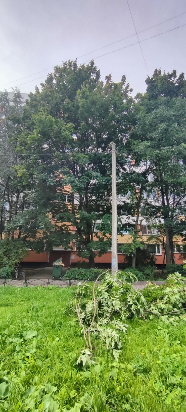 Во дворе рядом с 1 парадной растут 4 страшных дерева. Стволы (оси) деревьев наклонены на 30-40 градусов к земле. Корневая система этих деревьев разрушает инженерные колодцы рядом. Поскольку корни растут и вылезают на поверхность земли, есть вероятность падения этих деревьев при сильном ветре на электрические сети (Ленсвет).