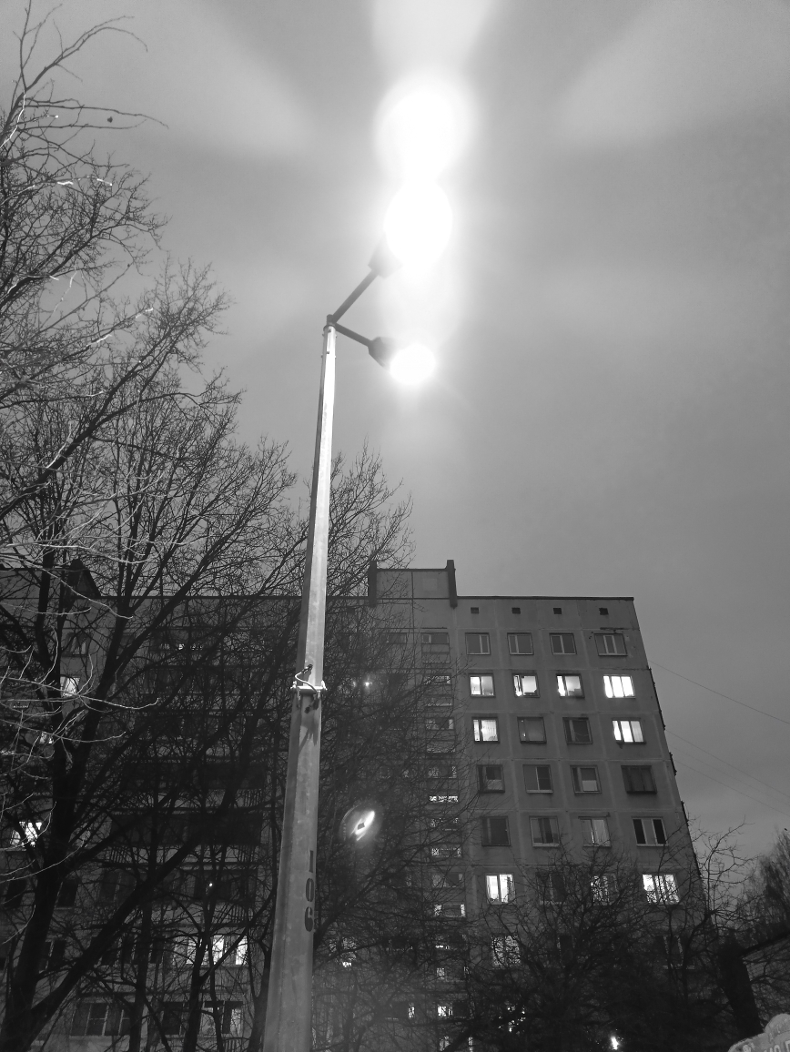 Не работает фонарь уличного освещения и другой мигает.Детский сад 6 уд. Софьи Ковалевской 13 кор 5