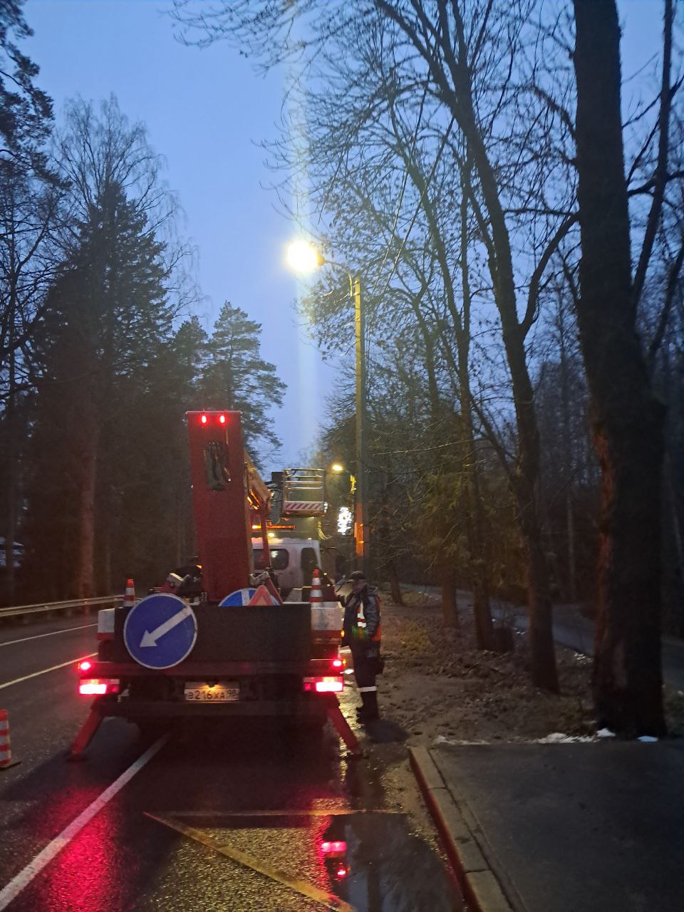 На Остановке лесопарк отсутствует освещение и на пешеходном переходе