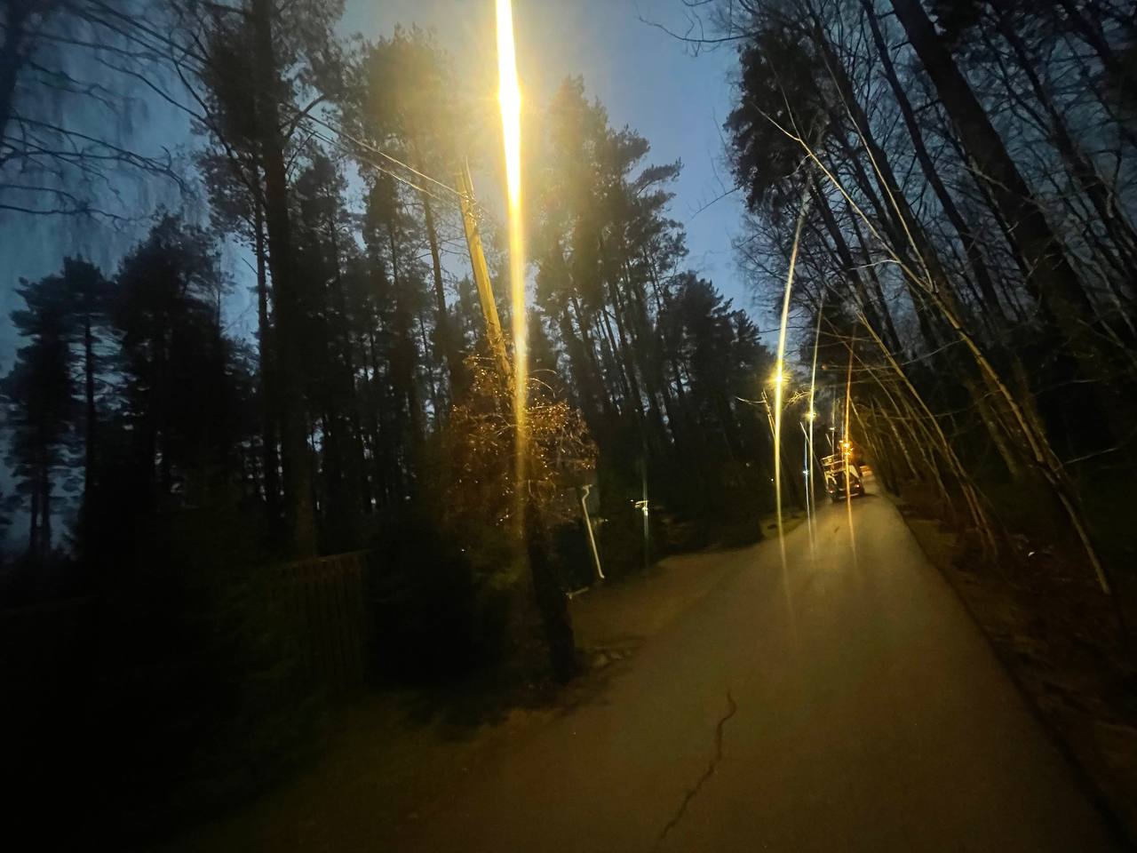 2.Не горят три светильника ЖКУ-150 по асфальтовой лесной дороге в сторону ЖД станции (влево от выхода с поселка)