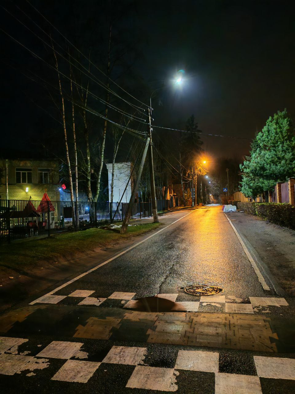 Вообще отсутствует уличное освещение. Есть отдельные фонари на зданиях сервисов. Улица тупиковая, в конце которой находится моторвагонное депо, в котором работают порядка 750 человек, часть из которых ходит с автобусной остановки пешком в одежде без светоотражающих элементов, проезжающие машины их могут заметить слишком поздно.
