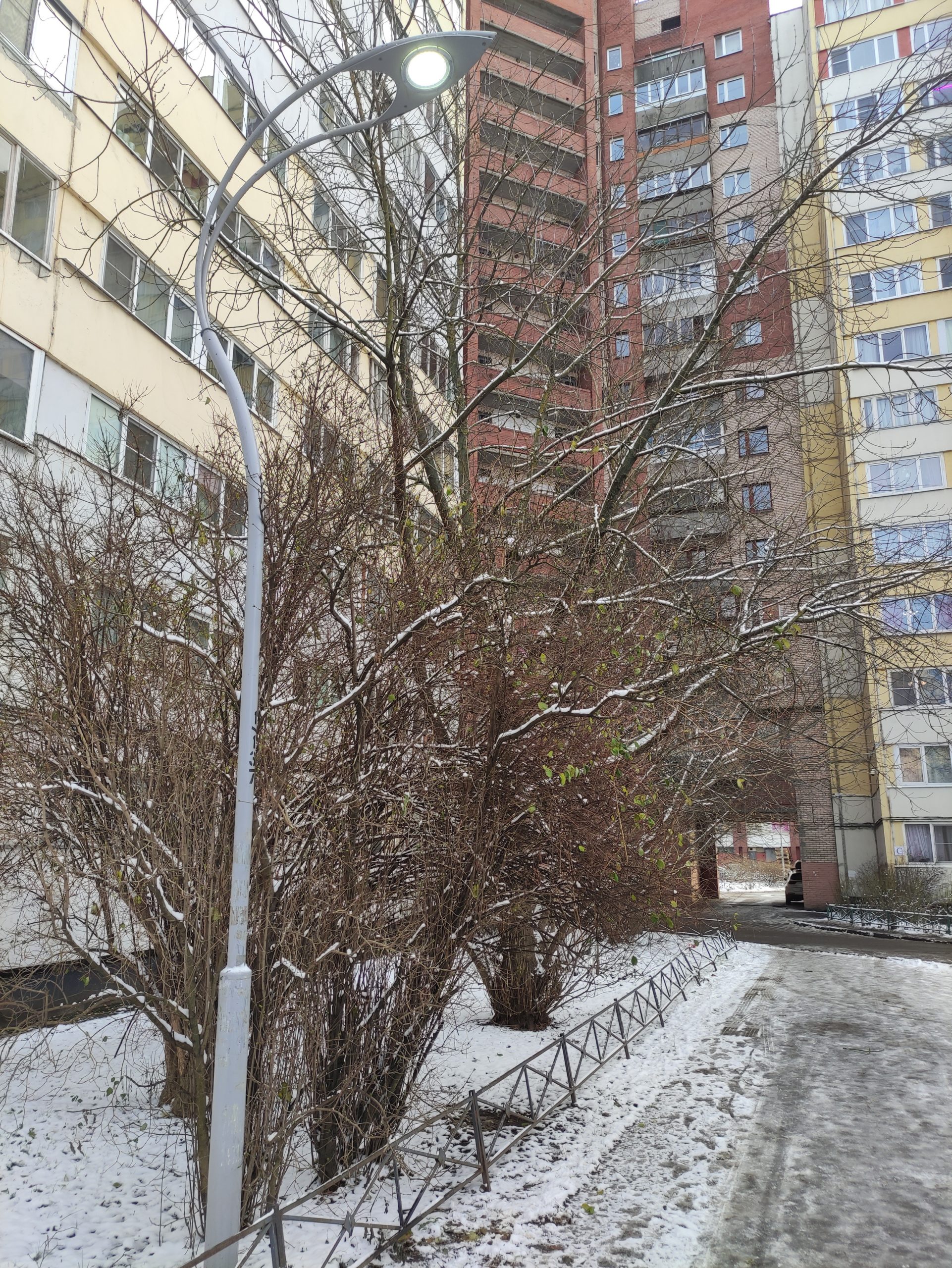 Не работает светильник первый вдоль дорожки внутри двора ,справа от площадки с мусорным контейнером