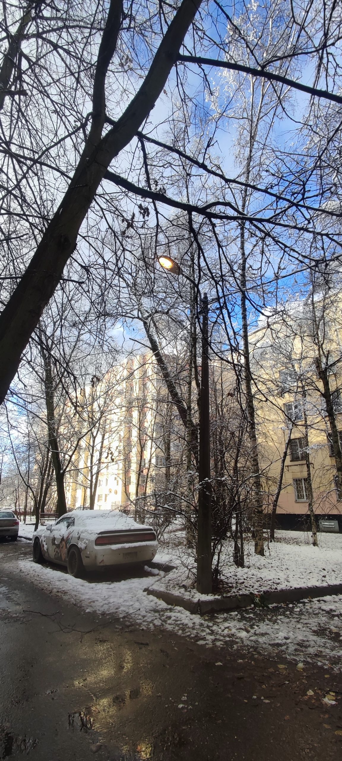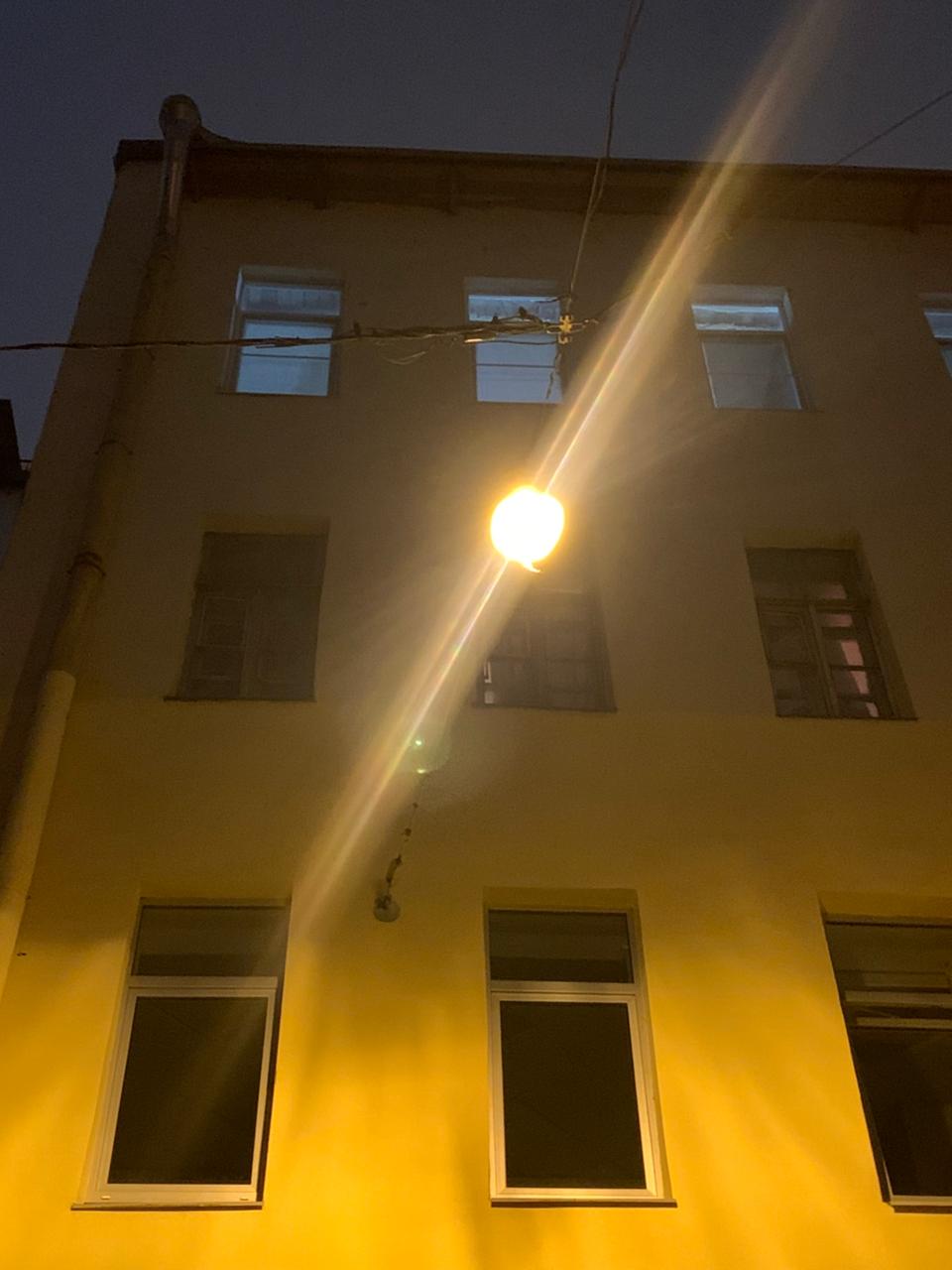 Нет света на фонаре напротив второй парадной