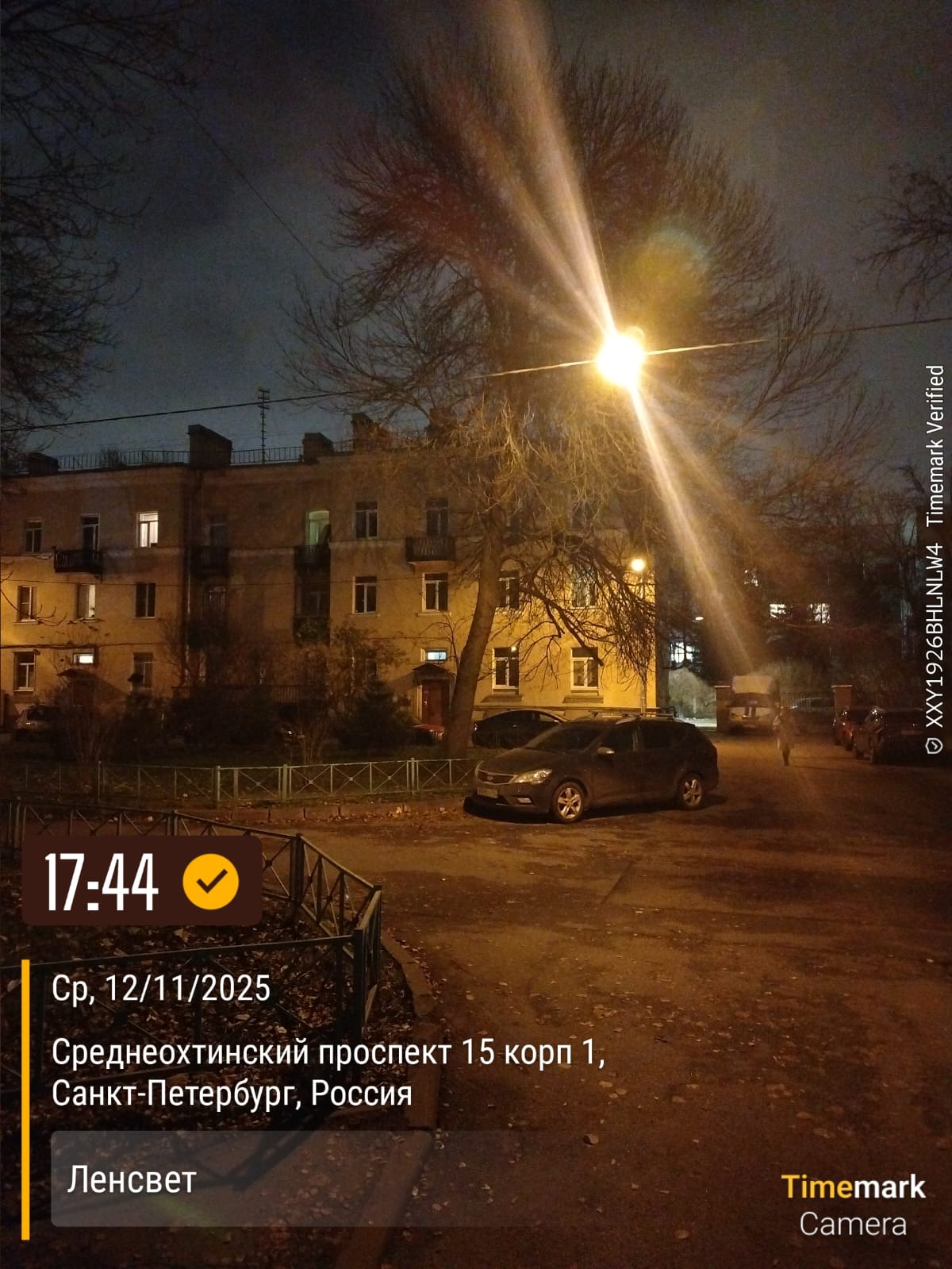 Здравствуйте. Не работает уличный фонарь по адресу наб. Чёрной речки дом 8 напротив 1 парадной.