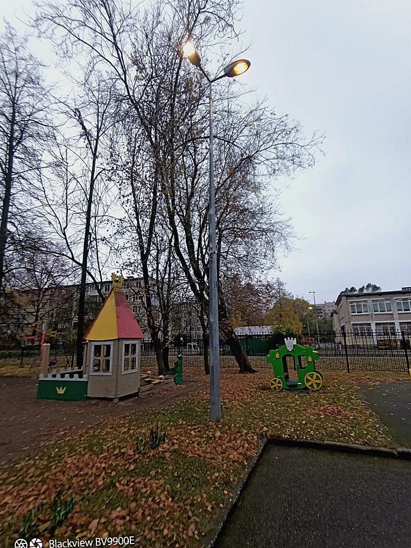На территории детского сада № 32 Выборгского района Санкт-Петербурга по адресу ул. Кустодиева, д.1 не работают светильники в количестве 13 шт.