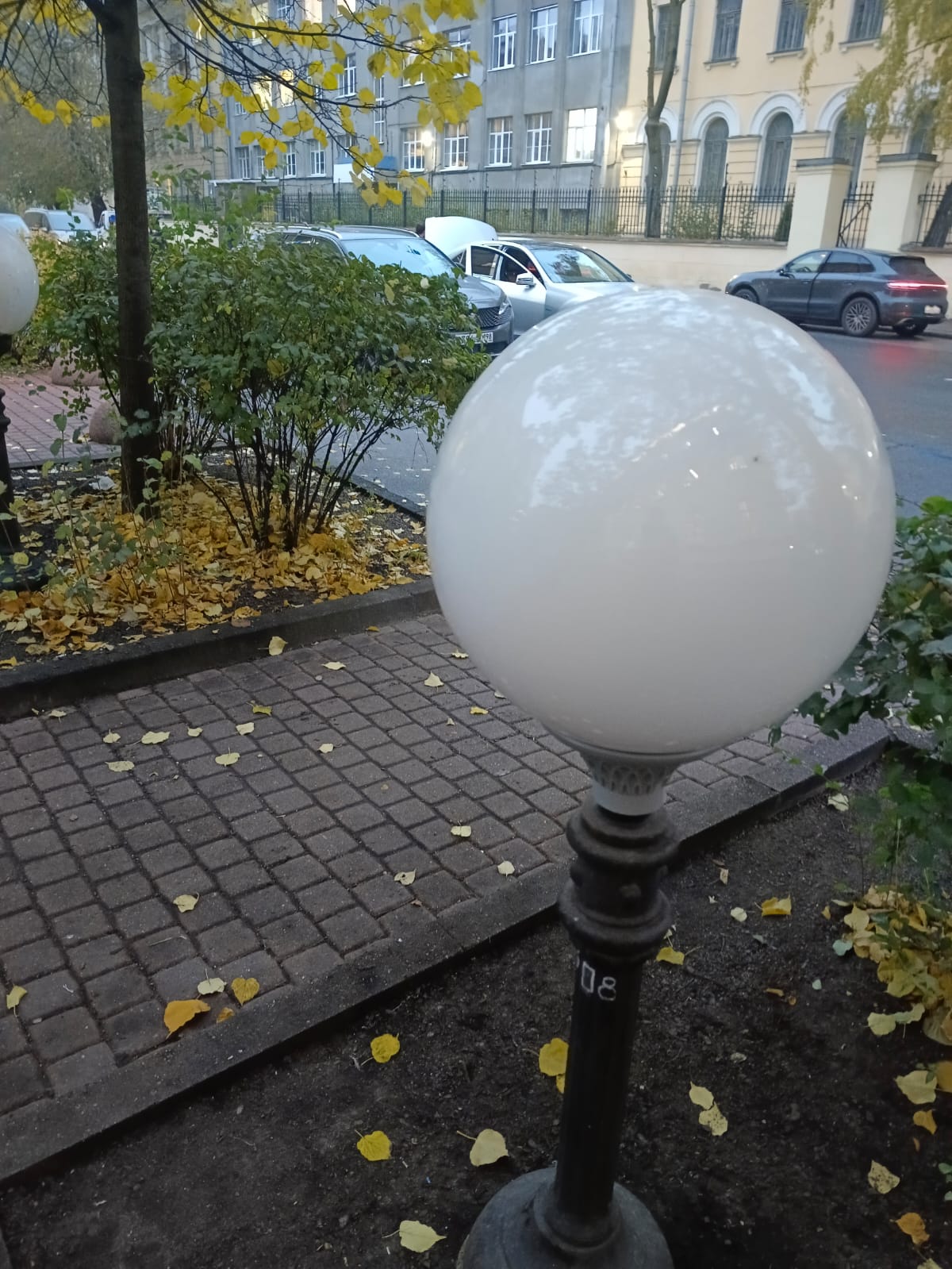 Между домами ул. Парадная 9 и Виленский пер. 14 разбит плафон светильника.