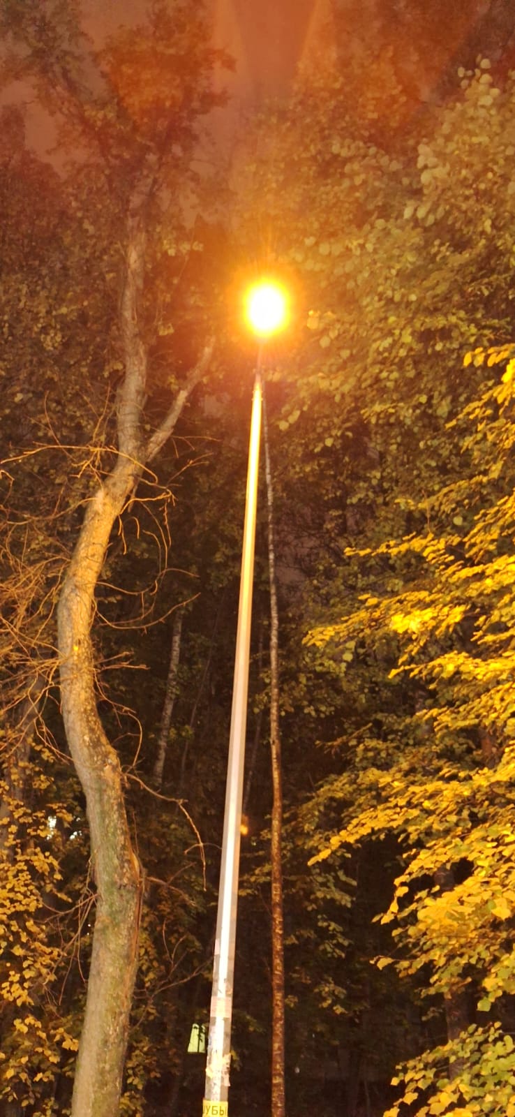 Светильник между юрия пасторова 12 и Юрия пасторово 15 не светит.