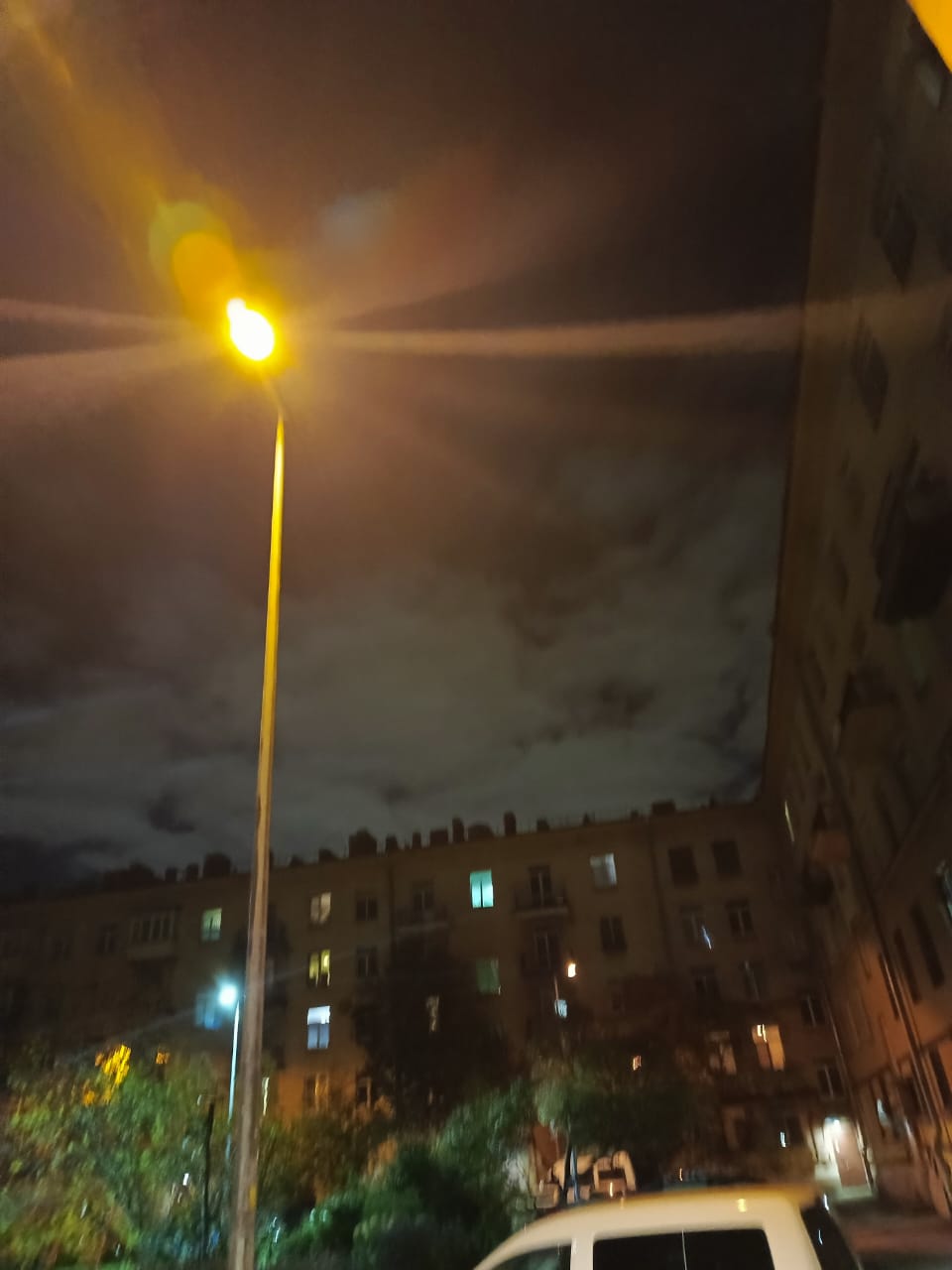 Уже давно не работает светильник. Дворовой проезд тёмный. Движение интенсивное, тротуаров нет. Очень опасно передвигаться в тёмное время суток.