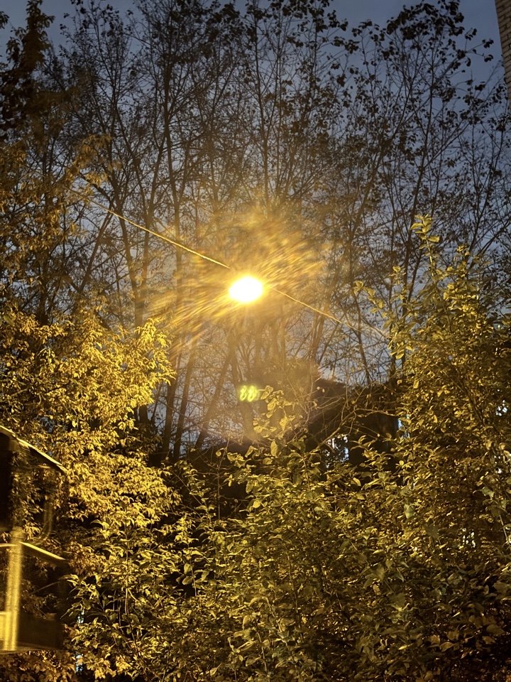 Не горит светильник, расположенный, как идти от основного крыльца дома 34 к помойке, в кустах.