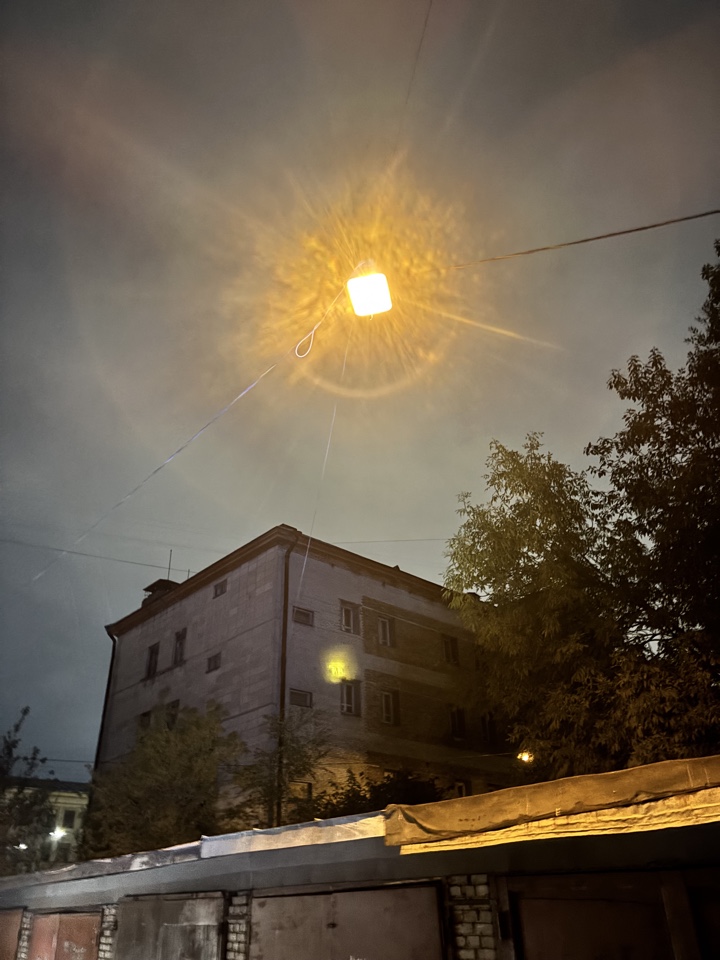 Фонарь напротив въезда в погрузочную зону магазина Пятерочка